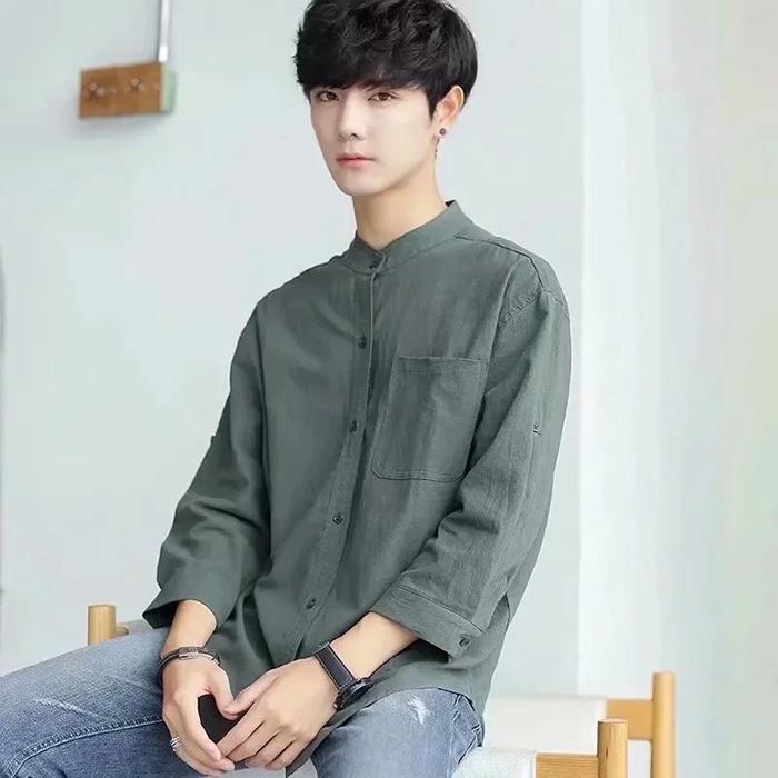 Áo đũi nam cổ tầu tay lỡ dáng sơ mi trẻ trung, thời trang phong cách Hàn