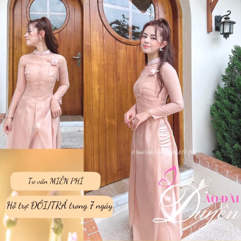 Áo dài may sẵn đẹp nữ thiết kế truyền thống cách tân tết hoa nhí nền hồng K151