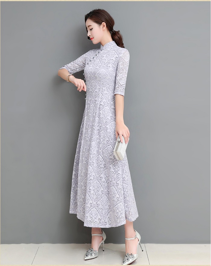 Áo dài cách tân ren hoa chân váy xòe siêu sang – SX09