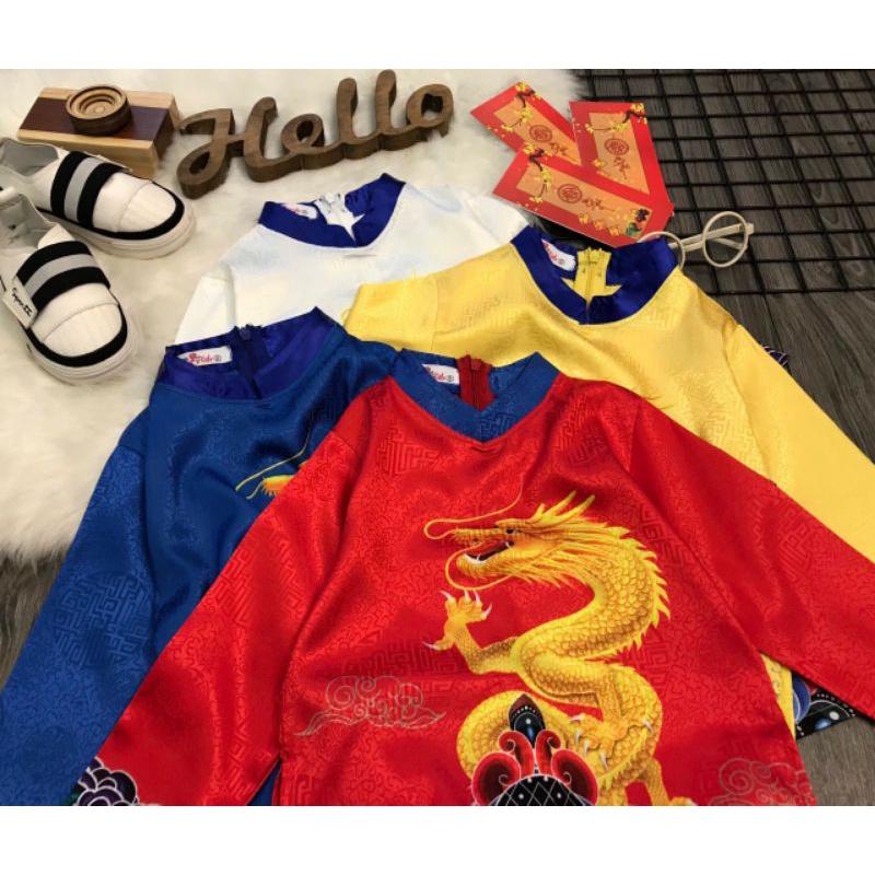 HÀNG BAO CHUNG chất vãi đẹp Áo dài rồng mạnh mẻ sang trọng cho bé trai ngày lễ tết. Áo chất gấm nổi 3D mềm mịn hàng nhập nguyên cây , dây kéo thân sau, hình in 3D sắc nét. Hoạ tiết...