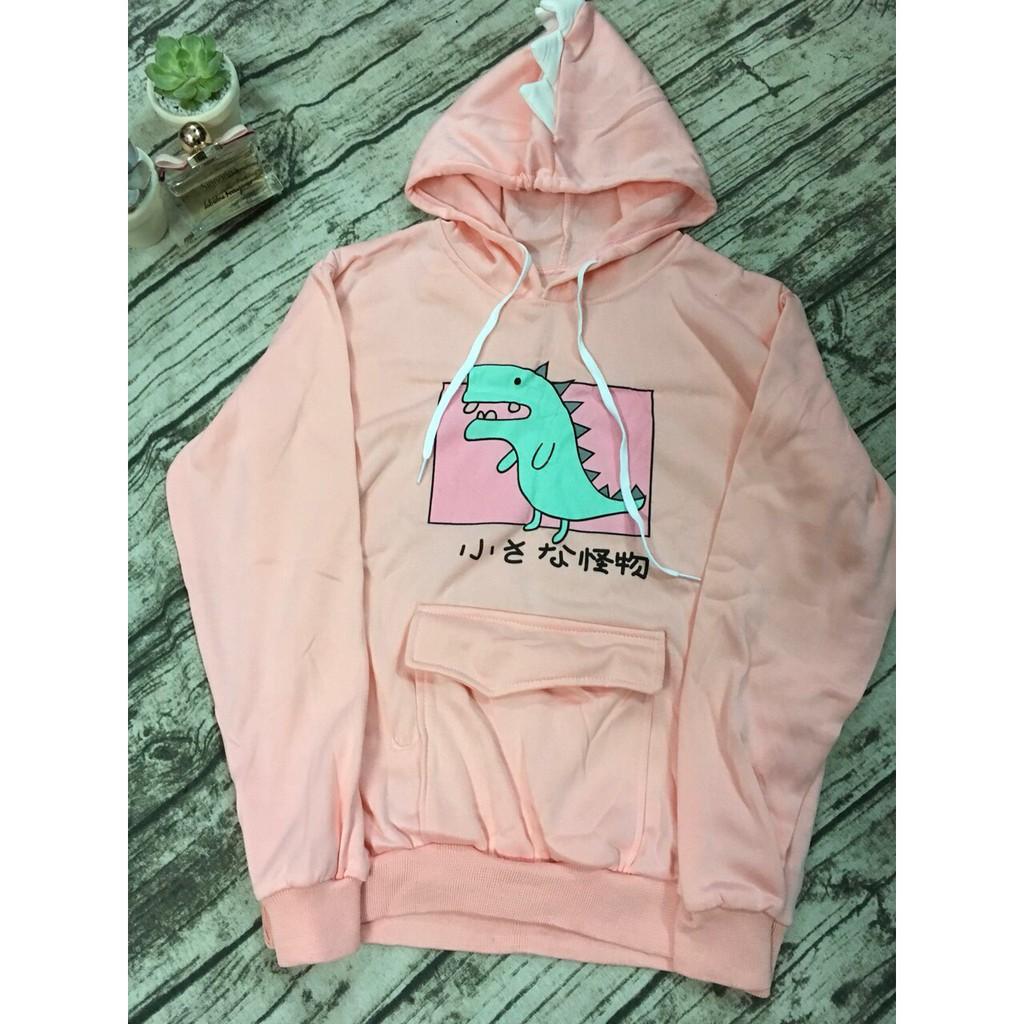 Áo hoodie unisex chất nỉ bông mỏng in hình khủng long. Ảnh thật trải sàn