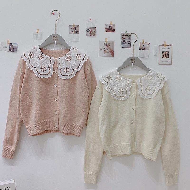 Áo len cổ ren trắng