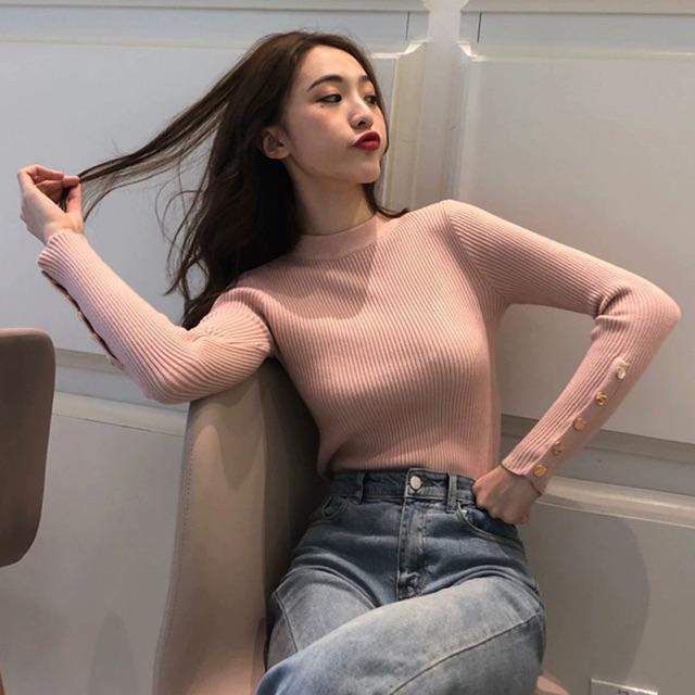 Áo len nữ siêu mềm cổ 3p đính khuy tay