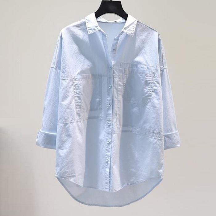 Áo sơ mi nữ cổ đức chất đũi 2 túi ốp ngực, thời trang phong cách trẻ