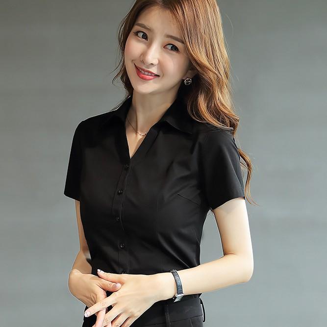 Áo sơ mi nữ form body tay ngắn / tay dài vải kate màu đen / trắng CRA038