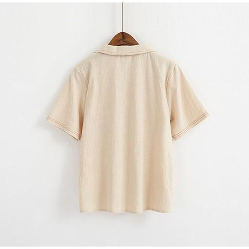Áo sơ mi nữ thiết kế cổ tàu vải thô đũi mềm mát sm51