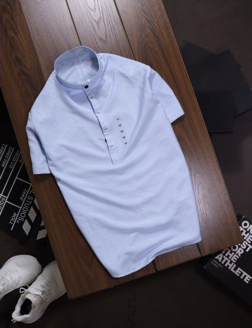 Áo Sơ Mi Nam Cổ Tàu Tay Ngắn - Xanh dương nhạt - M