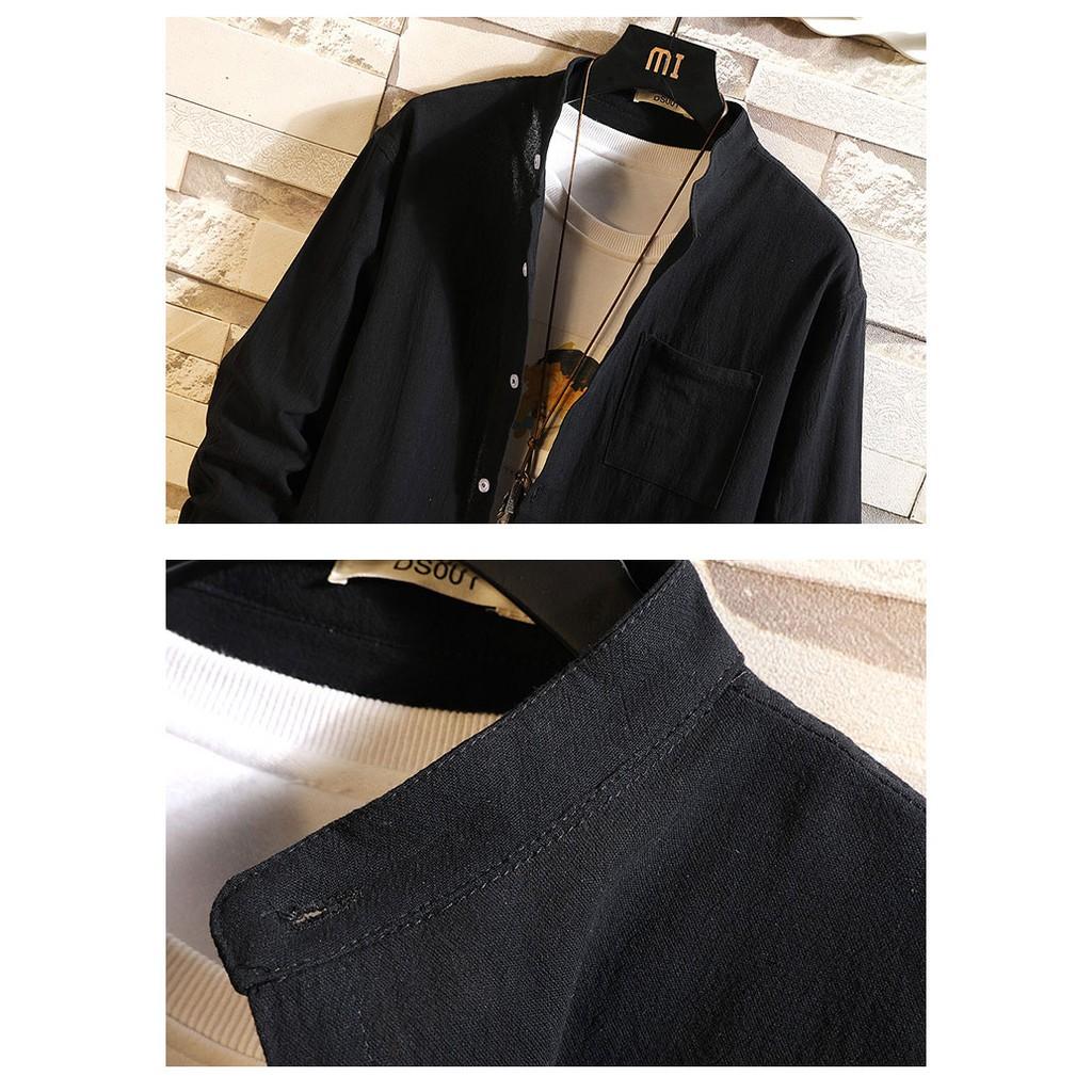 Áo sơ mi nam dài tay cổ tầu khuy mở form rộng chất đũi mềm mát, thời trang xuân hè 2021