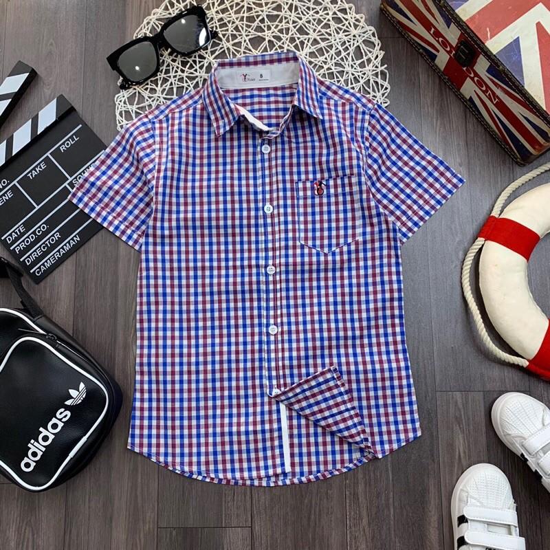 Áo sơ mi sọc caro bé trai phong cách Hàn Quốc A010