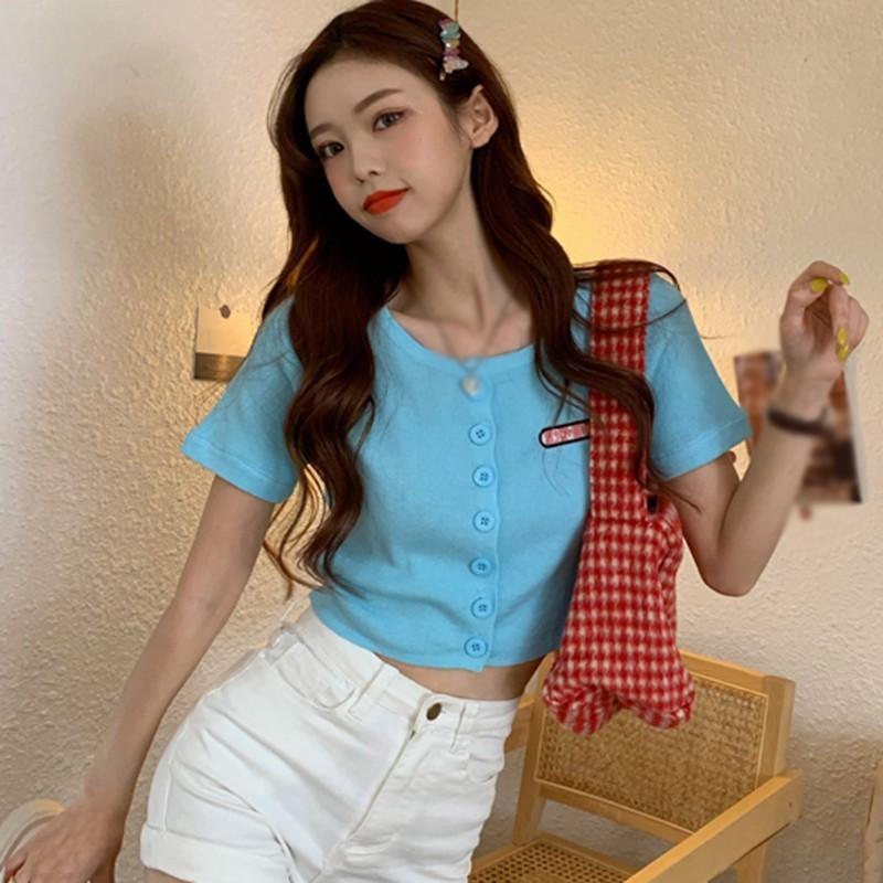 Áo thun cổ tròn tay ngắn xinh xắn dành cho nữ