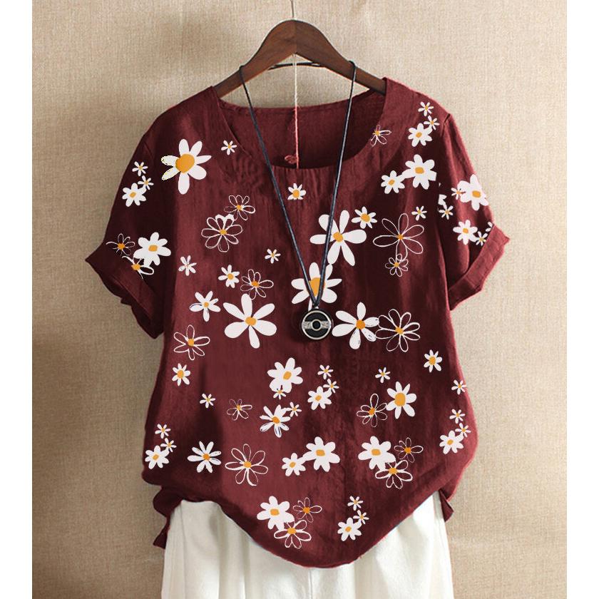 ------Welcome to corkfootwear Shop------ Detail Material: Cotton Clothing pattern: Flower Print Style: Simple commuting/Korean version Popular elements: Printing,Splicing Size Length Bust Shoulder Sleeve M 69.5cm 105cm 42cm 26cm L 70.5cm 110cm 43.5cm 26.4cm XL 71.5cm 115cm 44.5cm 26.8cm 2XL 72.5cm 120cm 45.5cm 27.2cm 3XL 73.5cm 125cm 47cm 27.6cm 4XL 74.5cm 130cm 48.5cm 28cm 5XL 75.5cm 135cm 49.5cm 28.4cm Package Included: 1*Woman T-shirt Due to the light and screen difference, the item's color may be slightly different from the pictures. Because of the different measurement methods, there may be 1-3cm of the allowable range error. Giá sản phẩm trên Tiki đã bao gồm thuế theo luật hiện hành. Bên cạnh đó, tuỳ vào loại sản phẩm, hình thức và địa chỉ giao hàng mà có thể phát sinh thêm chi phí khác như phí vận chuyển, phụ phí hàng cồng kềnh, thuế nhập khẩu (đối với đơn hàng giao từ nước ngoài có giá trị trên 1 triệu đồng).....