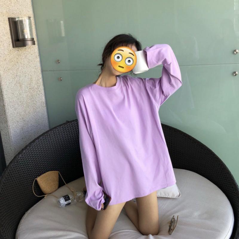 Áo Thun Trơn Tay Dài Unisex MÀU TÍM Form Rộng