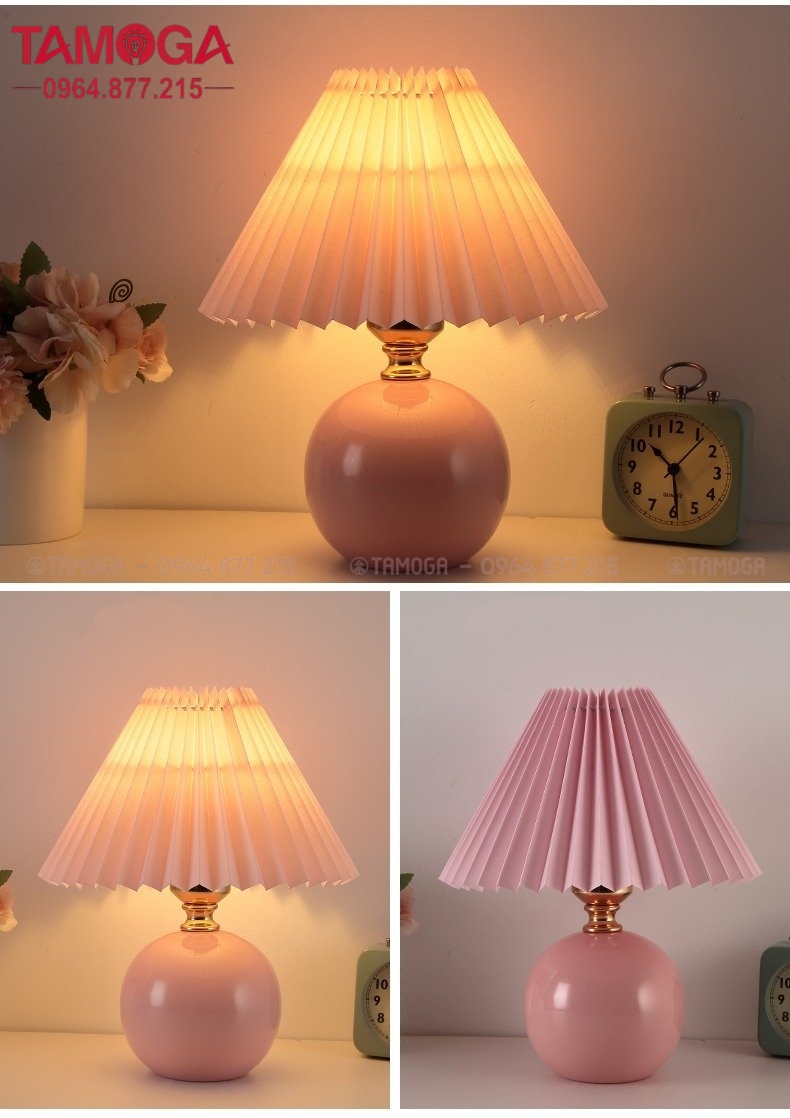 Đèn bàn phòng ngủ chất liệu gốm sứ xếp ly TAMOGA 6001 decor nhà cửa