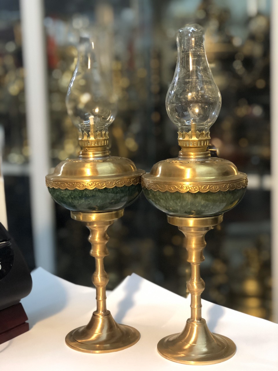 Đèn thờ bằng đồng -kích thước:cao 30cm,nặng 1kg-chất liệu:đồng vàng kết hợp đá xanh...