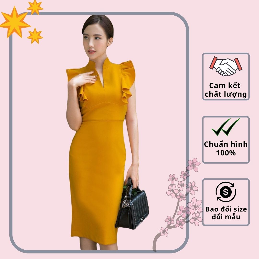 Đầm body công sở cổ trụ màu vàng thanh lịch - VN241801