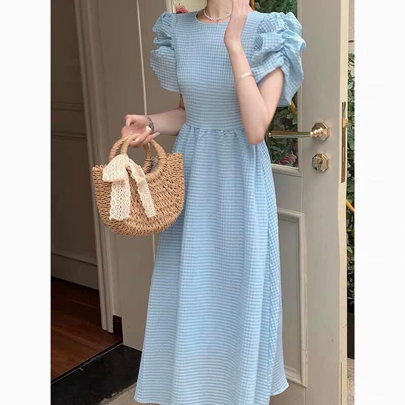 Đầm dự tiệc dáng xòe tay dún hàng cao cấp