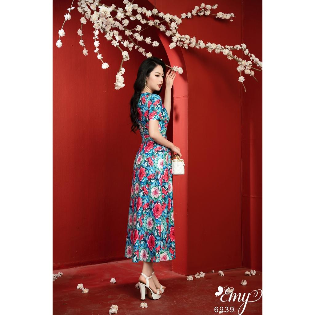 CHI TIẾT VỀ ĐẦM EM6939 --Đầm xoè frome maxi biển,cổ V đắp chéo, xếp ply lệch sườn,tay ngắn.Vải lụa kaki in hoa ,nền xanh loang ,kết hợp hoạ tiết hoa.Váy không lót,có túi,khoá kéo sau. ...