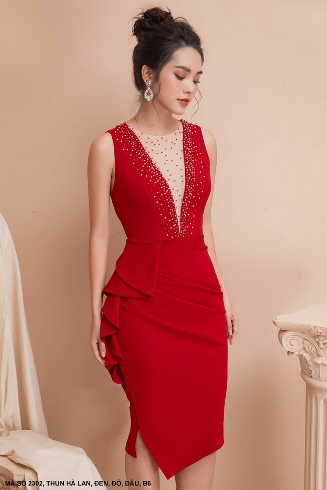 ĐẦM LAI NHỌN CỔ TIM SÂUSize M Đen : 25 , Dâu : 3 , Đỏ : 13 , Vòng ngực:80-90cm - Vòng eo: 65-75cm - Vòng mông: 85-95cm - Chiều dài:95cm (số đo co giãn +- 3cm) (khoảng 53kg trở xuống mặc vừa đẹp)Size S...