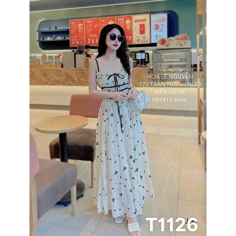 Đầm maxi 2 dây dáng dài chất xốp hoa phù hợp đi chơi dạo phố và đi biển