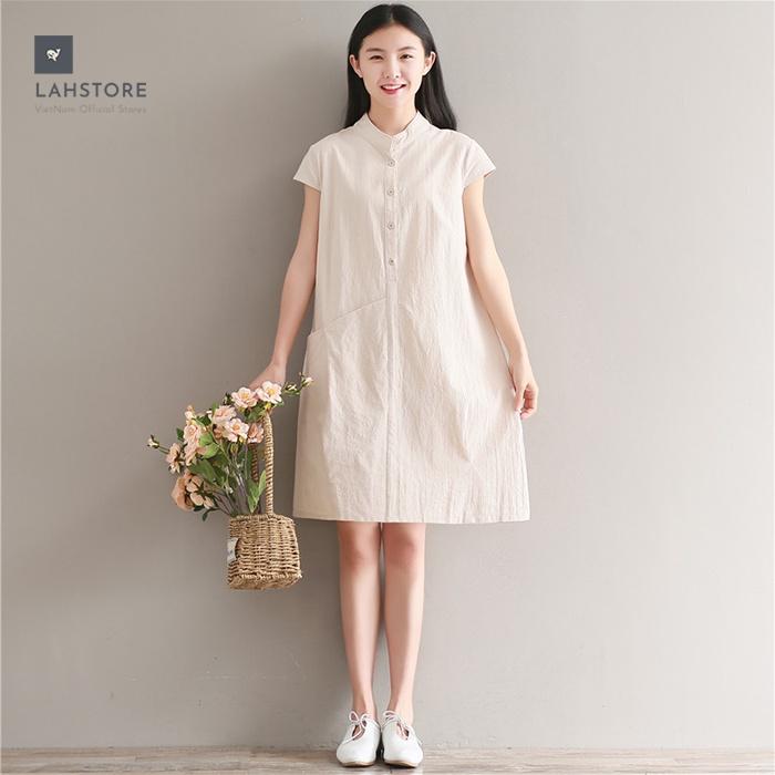 Đầm suông đũi cổ trụ LAHSTORE phối túi bên hông, chất đũi mềm mát, thời trang trẻ được thiết kế thanh nhã với kiểu đầm suông rộng trẻ trung. sang trọng. Đầm được may từ chất liệu đũi cao...