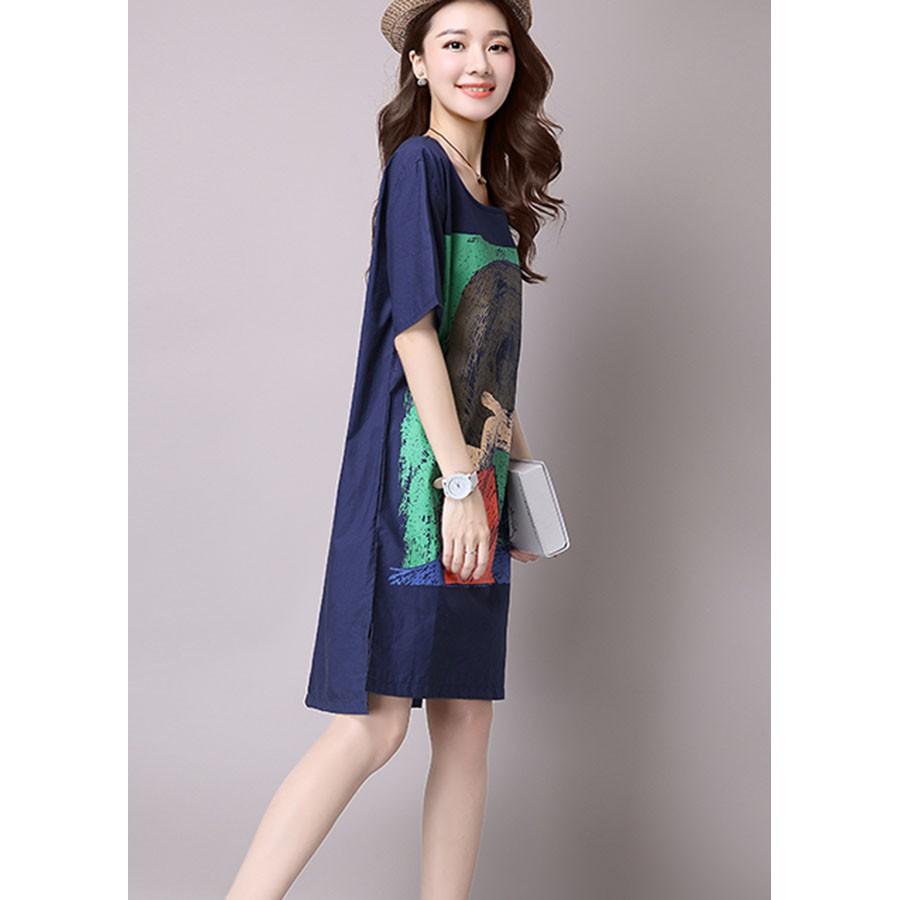 Đầm suông dạo phố in hình cô gái dễ thương, chất vải thô mềm mát, thích hợp mùa hè, hàng nhập Quảng Châu