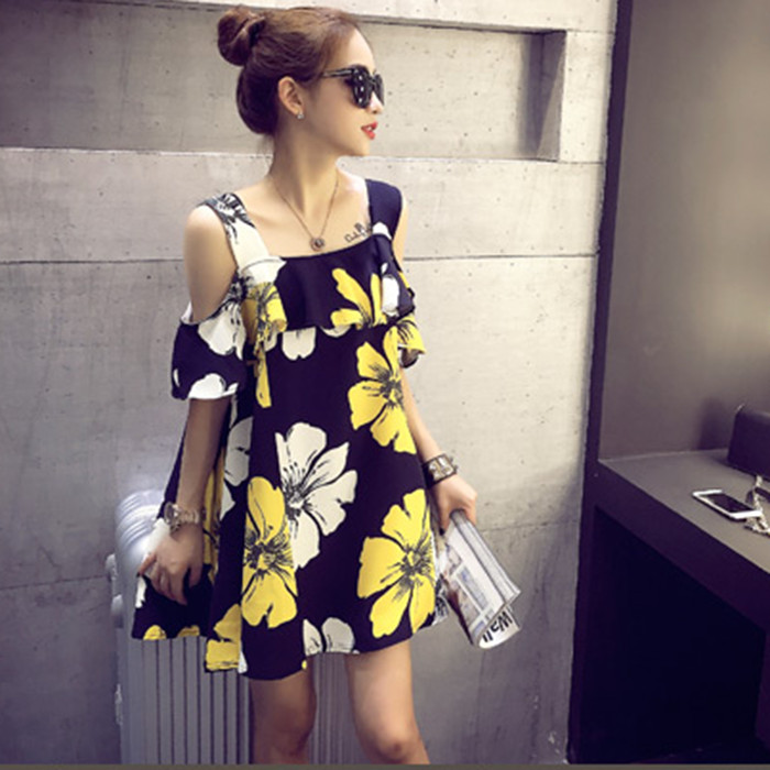 Đầm suông dạo phố trễ vai in hoa dễ thương, thời trang phong cách trẻ