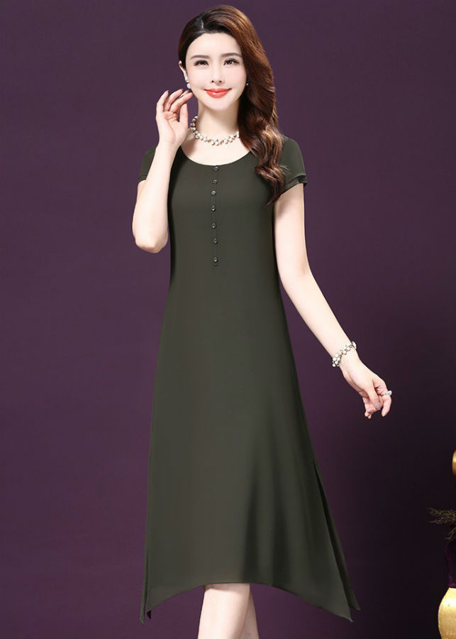 Đầm Suông Nữ Trung Niên Tay Ngắn Phối Nút LB-19