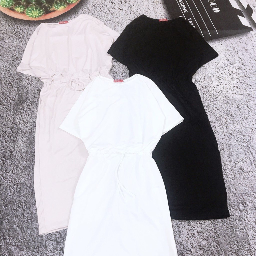 Đầm suông tay lỡ rút eo, váy suông dáng dài form rộng 3 màu xinh xắn