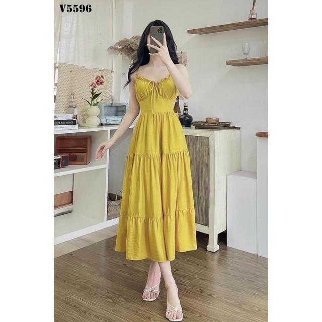 Đầm váy hai dây xếp tầng dáng xòe,3 màu sắc thích hợp cho nàng dạo phố, đi biển