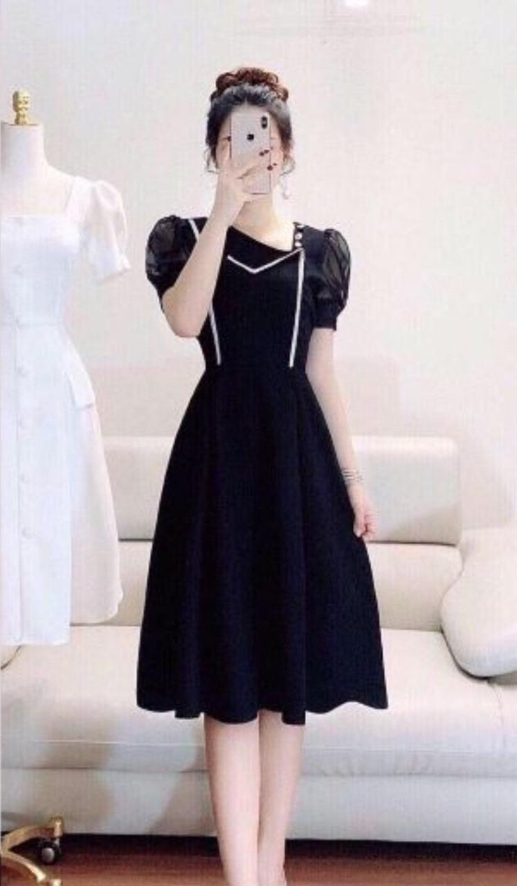 Đầm xòe cổ cách điệu màu đen phối dây viền màu trắng nổi bật, đầm được may bằng vải thun cát 100% co giãn thoải mái mang lại cảm giác cho người mặcsize M : 38-47kgsize L : 47-55kgsize XL : 56-63kg...