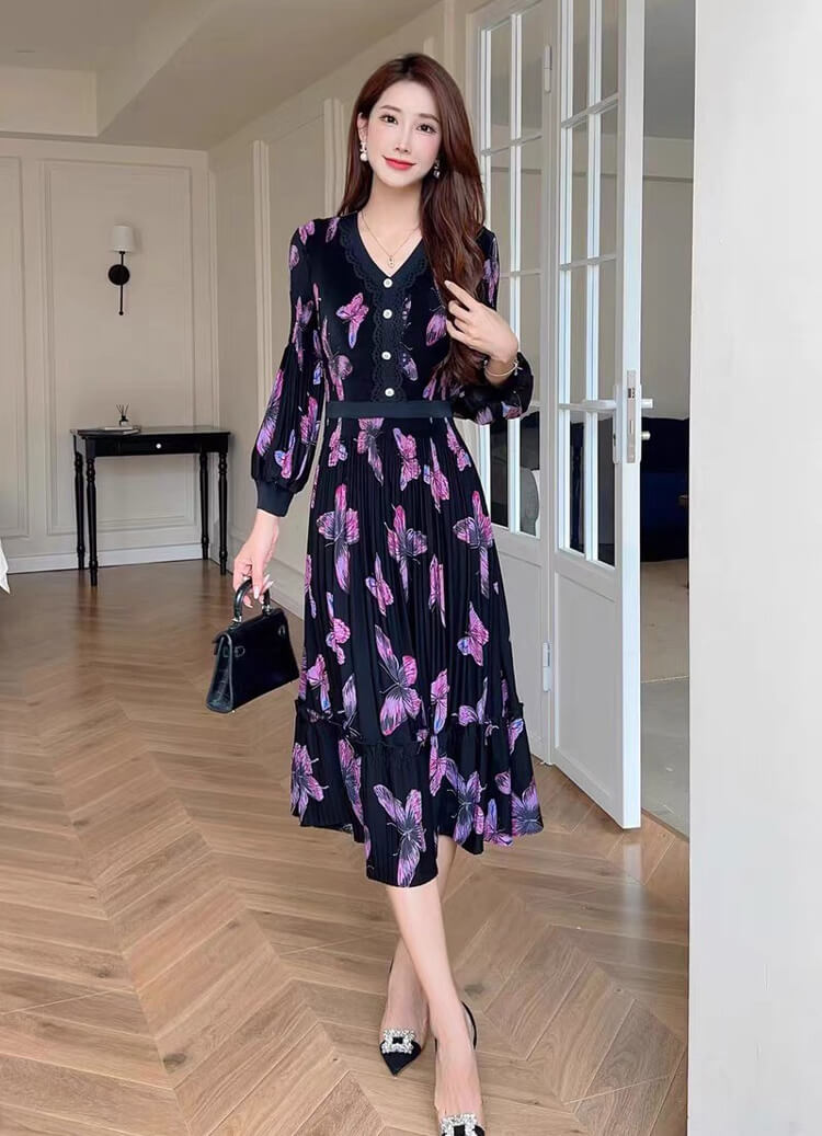 Đầm xòe dập ly họa tiết bướm