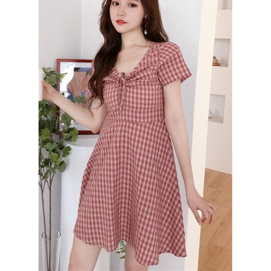 Đầm xòe kẻ ô vuông điệu đà, chất vải kate mềm mát, hàng nhập Quảng Châu