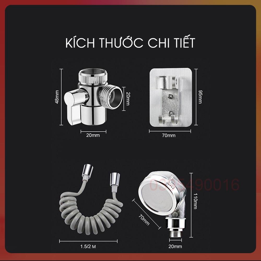 Bộ đầu chia vòi nước chậu rửa mặt, vòi sen lọc nước, dây lò xo dài 1m, đầu chuyển đổi inox 304, giá đỡ vòi sen dán tường Đặc điểm nổi bật: - Thông thường vòi chậu rửa mặt Lavabo thậm chí là vòi chậu rửa bát đôi khi chỉ đơn thuần là chiếc vòi rửa không có khả năng xoay 360 độ, rất khó để vệ sinh thành chậu, mặt bàn, vị trí xung quanh vì vòi đã cố định và nếu muốn hứng nước ra bình, chậu để mang đi chỗ khác cũng khó. - Ở những nhà vệ sinh chật, có thể dùng luôn vòi sen lắp thêm này để tắm, gội đầu rất tiện. Bộ vòi sen phụ lắp bồn rửa mặt Lavabo và chậu rửa bát nhà tắm là một giải pháp hữu hiệu. - Dùng để kéo vòi ra những vị trí thuận lợi hơn để thao tác - Dùng để tắm gội đầu khi nhà vệ sinh nhỏ - Lắp đặt: sản phẩm có đầy đủ phụ kiện kèm theo, chỉ cần tháo đầu vòi đang dùng, lắp bộ chuyển đổi đi kèm, gắn vòi sen vào là dùng được ngay. Chi tiết sản phẩm: - Chất liệu : nhựa ABS - Màu sắc : trắng - Kích thước chi tiết : như ảnh hiển thị Bộ sản phẩm gồm: + 1 Đầu sen (tùy chọn) + 1 bộ chuyển đổi bằng Inox 304 không gỉ + 1 dây cấp lò xo dài 1m + 1 chân đế giữ vòi sen Shop xin cam kết: 1. Sản phẩm mẫu mã,chất lượng tuyệt đối đúng hình ảnh,mô tả. 2. Ship bù HOÀN TOÀN MIỄN PHÍ đối với đơn hàng giao nhầm, thiếu, thừa, hỏng, lổi sản phẩm khi khách hàng thông báo trong vòng 48h kể từ khi nhận hàng và có đầy đủ hình ảnh, video chứng minh ạ Giá sản phẩm trên Tiki đã bao gồm thuế theo luật hiện hành. Bên cạnh đó, tuỳ vào loại sản phẩm, hình thức và địa chỉ giao hàng mà có thể phát sinh thêm chi phí khác như phí vận chuyển, phụ phí hàng cồng kềnh, thuế nhập khẩu (đối với đơn hàng giao từ nước ngoài có giá trị trên 1 triệu đồng).....