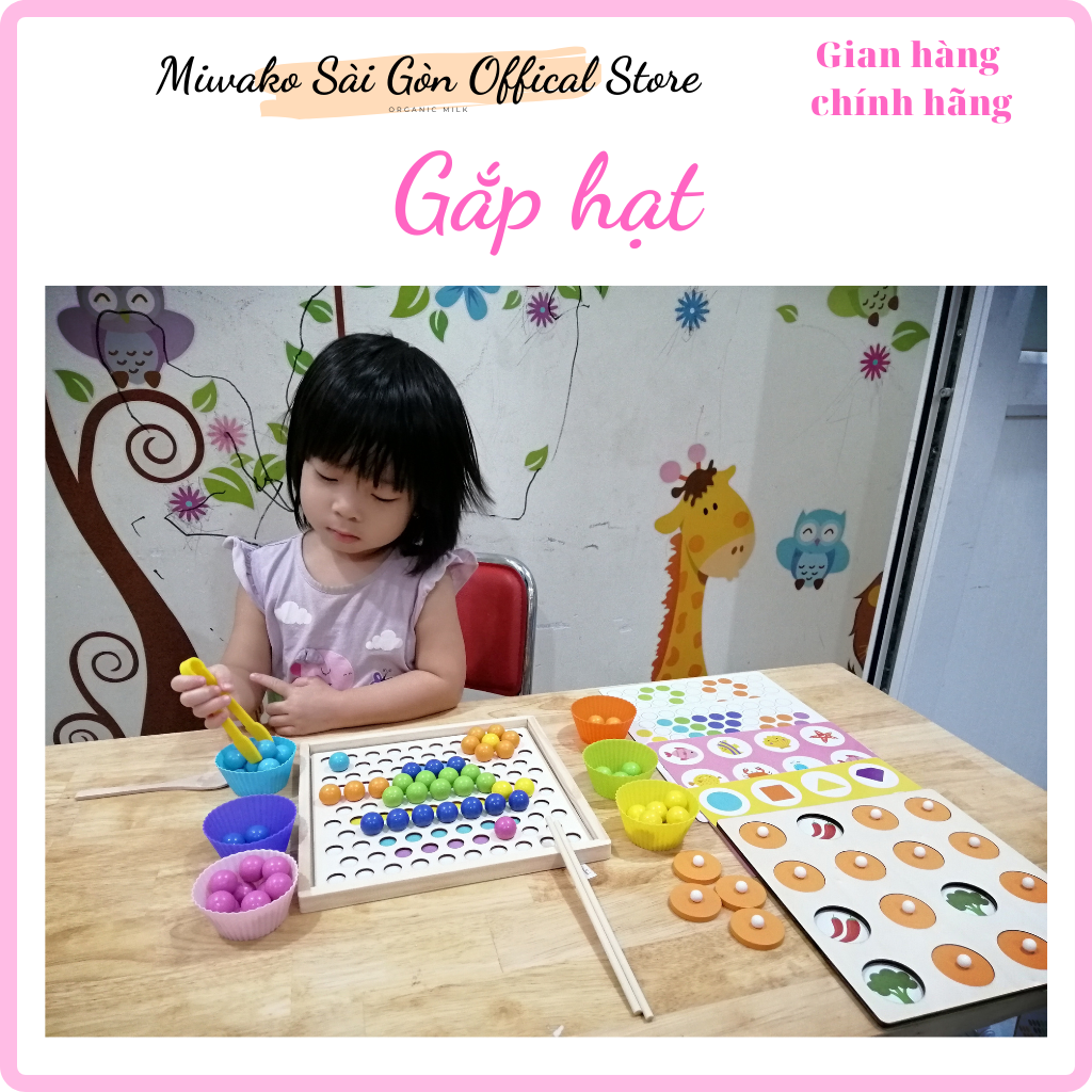 . GẮP HẠT. Rất đẹp, 100% bằng gỗ tốt rất an toàn cho bé chơi Gồm: 1. Trò chơi xúc hạt 2. Trò chơi nhớ vị trí, phân biệt đúng sai Loại này rất tốt rèn cho con tính cẩn thận,tỉ mỉ, tập trung. Tăng cường vận động tinh, học màu sắc Tăng tương tác với ba mẹ. Giúp bé rèn luyện phát triển tư duy, kĩ năng sống cơ bản: luyện gắp đồ vật bằng đũa, học cách dùng thìa, học cách dùng kẹp gắp đồ vật,phân loại các màu sắc cơ bản,thử sức với cách xếp hình sáng tạo độc đá Qua đó giúp trẻ trở lên khéo léo hơn, tăng cường khả năng cầm nắm, vận động tinh từ đó giúp thúc đẩy sự phát triển của não bộ khiến trẻ trở lên thông minh nhanh nhẹn hơn. Giá sản phẩm trên Tiki đã bao gồm thuế theo luật hiện hành. Bên cạnh đó, tuỳ vào loại sản phẩm, hình thức và địa chỉ giao hàng mà có thể phát sinh thêm chi phí khác như phí vận chuyển, phụ phí hàng cồng kềnh, thuế nhập khẩu (đối với đơn hàng giao từ nước ngoài có giá trị trên 1 triệu đồng).....