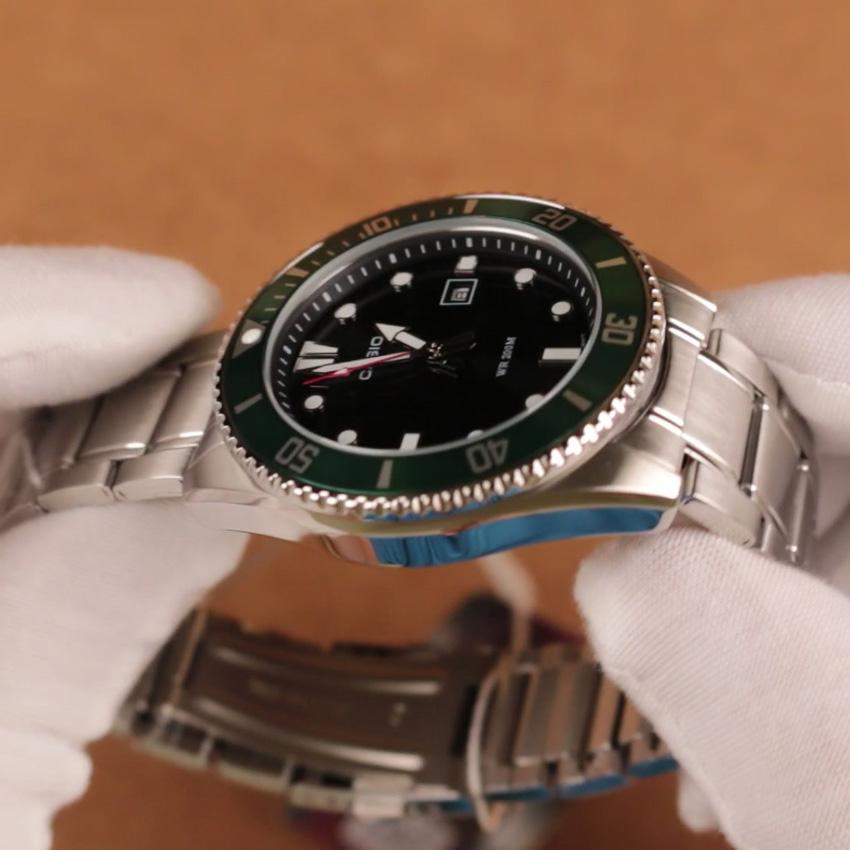 Dòng đồng hồ Casio MDV-107 khó có thể được gọi là một sản phẩm mới bởi vì trên thực tế, nó là bản sao của đồng hồ MDV-106 nổi tiếng được hãng Casio ra mắt rất lâu, nhưng với những khác biệt tối thiểu. Đồng hồ Casio nam MDV-107 khác những mẫu đồng hồ Casio khác bởi có viền màu và KHÔNG có logo Marlin. Sự hiện diện của màu màu sắc đặc biệt ở phần khung bezel tạo điểm nhấn và sự khác biệt cho chiếc đồng hồ. Mặt kính : Mặt kính khoáng Kích thước vỏ (Dài × Rộng × Cao) : 49.5 × 44.2 × 12.1 mm Trọng lượng : 144 g Vật liệu vỏ và gờ : Thép không gỉ / Nhôm Dây đeo : Dây đeo bằng thép không gỉ Nắp gập 3 lần chỉ với một lần bấm Chống nước : Khả năng chống nước ở độ sâu 200 mét Bộ nguồn và tuổi thọ pin : Tuổi thọ pin xấp xỉ: 3 năm đối với pin SR626SW Độ chính xác: ±20 giây một tháng Giờ hiện hành thông thường Đồng hồ kim: 3 kim (giờ, phút, giây) Bộ sản phẩm gồm: + 01 đồng hồ chính hãng có tem vàng + 01 hộp đựng sang trọng + Thẻ bảo hành chính hãng Giá sản phẩm trên Tiki đã bao gồm thuế theo luật hiện hành. Bên cạnh đó, tuỳ vào loại sản phẩm, hình thức và địa chỉ giao hàng mà có thể phát sinh thêm chi phí khác như phí vận chuyển, phụ phí hàng cồng kềnh, thuế nhập khẩu (đối với đơn hàng giao từ nước ngoài có giá trị trên 1 triệu đồng).....