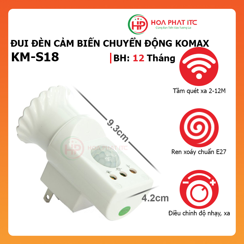 Đui đèn cảm biến chuyển động Komax KM-S18 tích hợp phích cắm