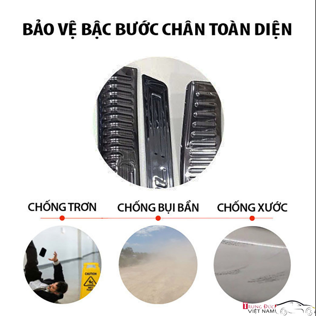 MÔ TẢ SẢN PHẨM• Ốp bậc cửa chân trong ngoài chất liệu thép không gỉ mạ TITAN, độ bền cao, không bị phai màu, rạn nứt hay han gỉ trong thời gian dài sử dụng. • Sản phẩm Ốp bậc cửa chân trong ngoài được thiết kế các chi tiết nổi, vừa có tác dụng bảo vệ chống trơn trượt, chống trầy xước bậc lên xuống xe trong quá trình sử dụng xe, vừa có tác dụng trang trí, làm nổi bật không gian nội thất, mang lại sự đẳng cấp và sang trọng cho xế yêu của bạn. • Bộ sản phẩm Ốp bậc cửa chân trong ngoài gồm 08 ( cả bộ ) chi tiết cho 4 bậc cửa xe, có sẵn keo 3M ở mặt sau sản phẩm, rất chắc chắn. • Khách hàng có thể tự lắp đặt Ốp bậc cửa chân trong ngoài tại nhà mà không cần tới sự trợ giúp của kĩ thuật viên cũng như không cần phải mang đến các Gara lắp đặt. Giá sản phẩm trên Tiki đã bao gồm thuế theo luật hiện hành. Bên cạnh đó, tuỳ vào loại sản phẩm, hình thức và địa chỉ giao hàng mà có thể phát sinh thêm chi phí khác như phí vận chuyển, phụ phí hàng cồng kềnh, thuế nhập khẩu (đối với đơn hàng giao từ nước ngoài có giá trị trên 1 triệu đồng).....