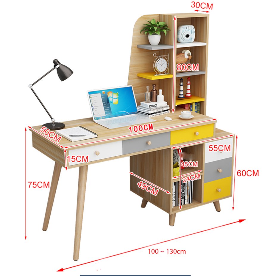 Bàn làm việc gỗ công nghiệp tiện lợi kèm giá sách