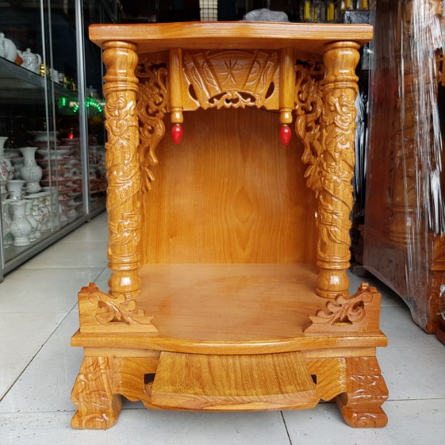 Bàn thờ thần tài ông địa gỗ gõ đỏ ngang 50 cm quỳ trụ