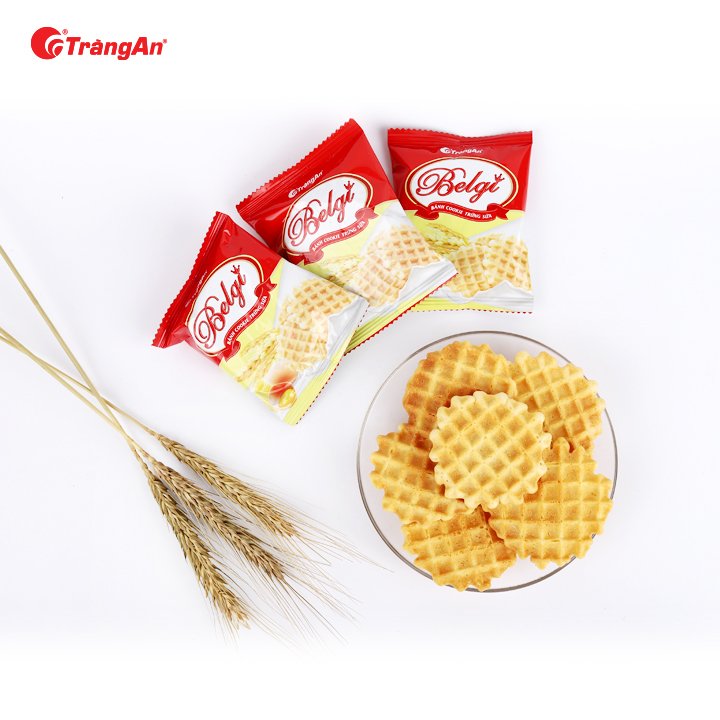 Bánh cookie trứng sữa Belgi Tràng An được làm từ 100% trứng gà tươi sạch, sữa bò từ cao nguyên Mộc Châu và bột mỳ hảo hạng.Bánh cookie Belgi với công thức đột phá mới, bổ sung canxi giúp chắc răng, t...
