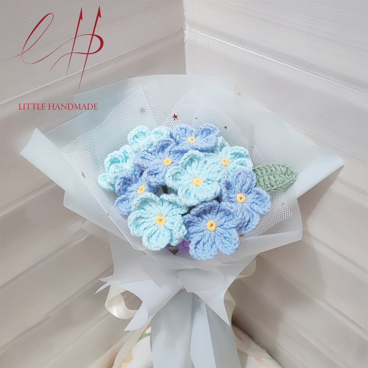 Bó hoa lưu ly xanh nhạt và xanh đậm 10 bông bằng len handmade