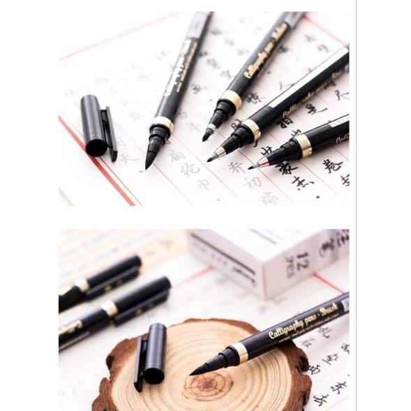 Bút dạ viết chữ hán, chữ việt - Bút có 4 cở, ruột bút có ống mực có thể dùng viết 1 đến 2 tháng mới hết mự khi hết mực thì mở nắp trên đỉnh bút, và đổ mực vàút dùng được các loại mực thô...