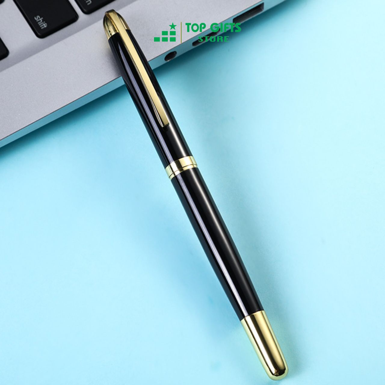 Bút ký doanh nhân PE032 khắc tên - ngòi 0.5mm mực xanh đen viền vàng + Hộp bút