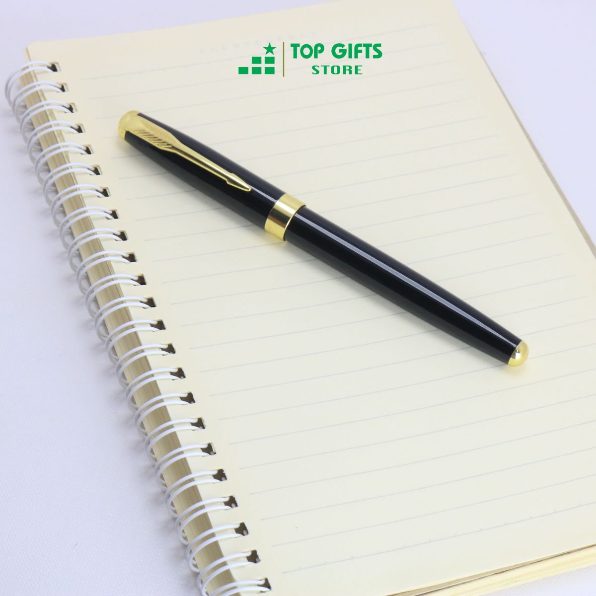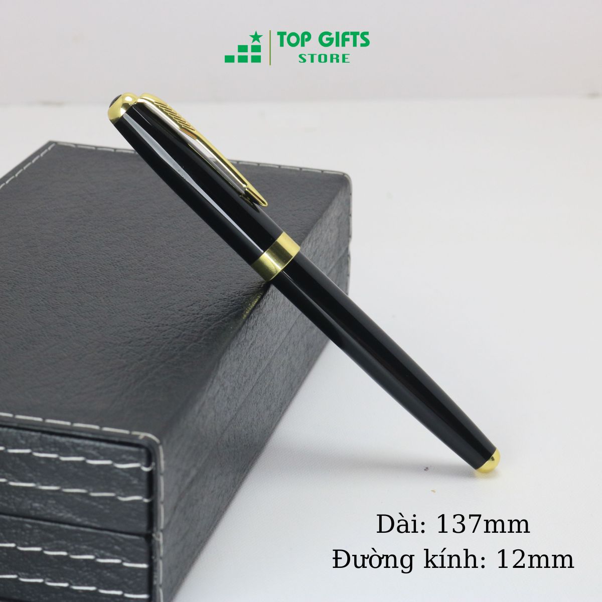 Bút khắc tên IM034 - Đen viền vàng ngòi 0.5mm mực xanh + Hộp bút