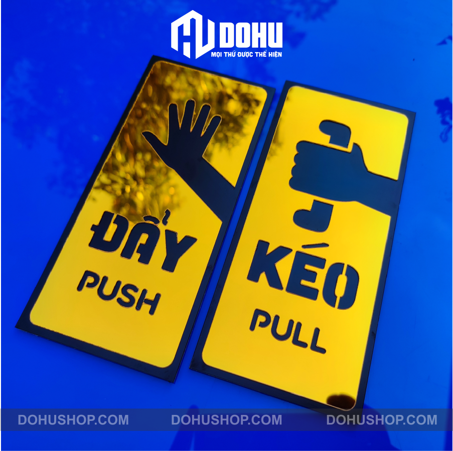 Mến chào bạn! Cám ơn bạn đã đến với sản phẩm bảng Bảng Gương Vàng Kéo Đẩy Cửa làm bằng nhựa tráng gương vàng cắt laser 3D chìm nổi trang trí nhà cửa sang trọng, hiện đại, đẳng cấp, độc đáo có một không hai của DOHU Shop! 1/ CAM KẾT CỦA DOHU: Ảnh và video sản phẩm do DOHU tự chụp nên bảo đảm giao hàng giống 100% như quảng cáo. Hoàn tiền 100% nếu khách hàng có bất kỳ điều gì không hài lòng về sản phẩm. 2/ THÔNG SỐ KỸ THUẬT CỦA BẢNG KÉO ĐẨY: - Kích thước 1: 20cmx9cm mỗi bảng. - Kích thước 2: 25cmx11cm mỗi bảng. - Kích thước lớn hơn: vui lòng liên hệ. - Độ dày: 4mm. - Chất liệu: Nhựa mica acrylic tráng gương vàng - Màu sắc: gương vàng sang trọng, đẳng cấp, hiện đại. - Dán cửa bằng băng keo 2 mặt siêu dính có sẵn phía sau bảng tiện dụng. - Cắt khắc bằng tia laser chìm 3D nổi bật tinh xảo. - Nhà sản xuất: DOHU. 3/ ƯU ĐIỂM VƯỢT TRỘI CỦA BẢNG DOHU: - Bảng được làm bằng chất liệu nhựa tráng gương vàng tạo sự nổi bật sang trọng, hiện đại và đẳng cấp. - Hình ảnh được chúng tôi thiết kế độc đáo, lạ mắt có một không hai. - Bảng mang lại cho ngôi nhà, văn phòng, quán cafe, nhà hàng, khách sạn, của bạn một sự khác biệt rõ rệt so với các quán khác. 4/ LƯU Ý KHÁCH HÀNG KHI MUA BẢNG DOHU: - Quý khách là cá nhân hay chủ công ty, quán cafe, nhà hàng, khách sạn, muốn đặt mua số lượng lớn hoặc thiết kế dành riêng cho thương hiệu của quán mình. Vui lòng nhắn tin trực tiếp với chúng tôi để có giá ưu đãi. 5/ ĐÔI NÉT VỀ CHÚNG TÔI - DOHU: - Chúng tôi chuyên thiết kế, sản xuất và phân phối các sản phẩm bằng gỗ như Tranh Tạo Động Lực, Bảng Biển Công Ty, Bảng WC, và rất nhiều sản phẩm nội thất độc lạ khác. - Phù hợp treo cửa trang trí cho mọi khu vực nhà cửa nội thất phòng không gian khác nhau như: nhà ở, quán trà sữa, văn phòng, quán cafe, nhà hàng, khách sạn, trường học, bệnh viện, homestay, quán cà phê, các khu vực công viên công cộng, hồ bơi, làm quà tặng doanh nghiệp, trang trí nhà mới, quà tặng sinh nhật, tân gia, tặng khách hàng dịp lễ tết cuối năm, - Với đội ngũ nhân viên lành nghề, máy móc hiện đại. DOHU tự tin mang lại cho quý khách hàng những sản phẩm tuyệt vời với giá cả phải chăng nhất. *** Còn chờ gì nữ Hãy đặt hàng ngay để thể hiện cá tính và dấu ấn riêng của chính bạn nhé! *** ️ Chúc quý khách an lành, hạnh phúc! ~~~ DOHU - NƠI TÌNH YÊU THỂ HIỆN ~~~Giá sản phẩm trên Tiki đã bao gồm thuế theo luật hiện hành. Bên cạnh đó, tuỳ vào loại sản phẩm, hình thức và địa chỉ giao hàng mà có thể phát sinh thêm chi phí khác như phí vận chuyển, phụ phí hàng cồng kềnh, thuế nhập khẩu (đối với đơn hàng giao từ nước ngoài có giá trị trên 1 triệu đồng).....