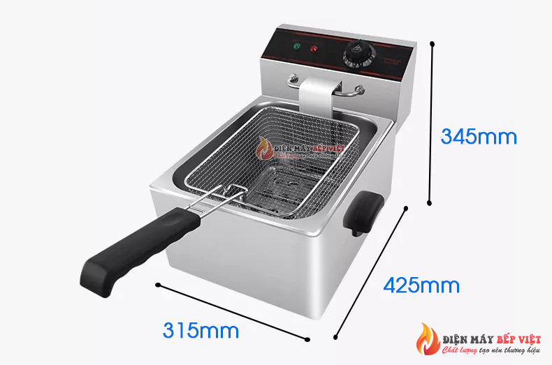 BẾP CHIÊN NHÚNG ĐƠN-ZL88 Bếp được đánh giá là bước ngoặt thành công của các dòng bếp chiên đơn nhúng cỡ trung khi hộp đựng dầu có dung tích lên đến 8 lít, thành hộp cao và rộng giúp người dùng có khoảng không gian chiên thoải mái và rộng rãi hơn. Bếp chiên nhúng đơn ZL-8L lít thích hợp để chiên các món ăn nhanh như đùi gà, thân gà, khoai tây lốc xoáy, các loại rau củ quả… cần độ rộng và dài của hộp đựng dầu. Các đặc tính nổi bật của bếp chiên đơn-ZL88 Bếp được thiết kế bởi lớp inox cách nhiệt không rỉ, luôn tạo độ sáng bóng cho bếp, đồng thời nhiệt độ tỏa ra xung quanh bếp không quá nóng khiến cho người dùng không bị ngột ngạt trong quá trình sử dụng. Thành bếp rộng và cao giúp thao tác sử dụng dễ dàng hơn. Thiết bị điều chỉnh nhiệt thông minh với công suất lớn giúp bếp đun sôi dầu trong thời gian cực ngắn, bên cạnh đó bộ điện còn có thể tự động giảm nhiệt khi đạt đến độ sôi nhất định. Rổ ráo dầu với thiết kế đẹp và chắn chắn, tay cầm rổ sử dụng loại keo dính đặc biệt giúp giữ chặt tay cầm và rổ không tách rời. Bảng thông số chi tiết, hướng dẫn khách hàng sử dụng dễ dàng bằng ngôn ngữ song phương. Bếp có cài đặt hệ động tự động ngắt điện khi gặp các sự cố xảy ra ngoài ý muốn về chập, cháy, nổ điện. Thiết bị điện trợ được bảo vệ bởi một lớp inox chắc chắn giúp chất lượng thành phẩm không bị ảnh hưởng, đồng thời giúp người dùng dễ dàng vệ sinh bếp. Bếp chiên nhúng đơn 8 lít được thiết kế sử dụng cho dòng điện gia đình (220V) nên phù hợp với hầu hết các khu vực đặt bếp. Bếp có thiết kế 2 tay cầm ở hai bên học đựng dầu giúp thuận tiện trong việc di chuyển.
