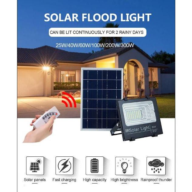 Đèn năng lượng mặt trời đèn pha100W 200W 300W 500W LED vỏ nhôm chống nước thời gian sáng kéo dài