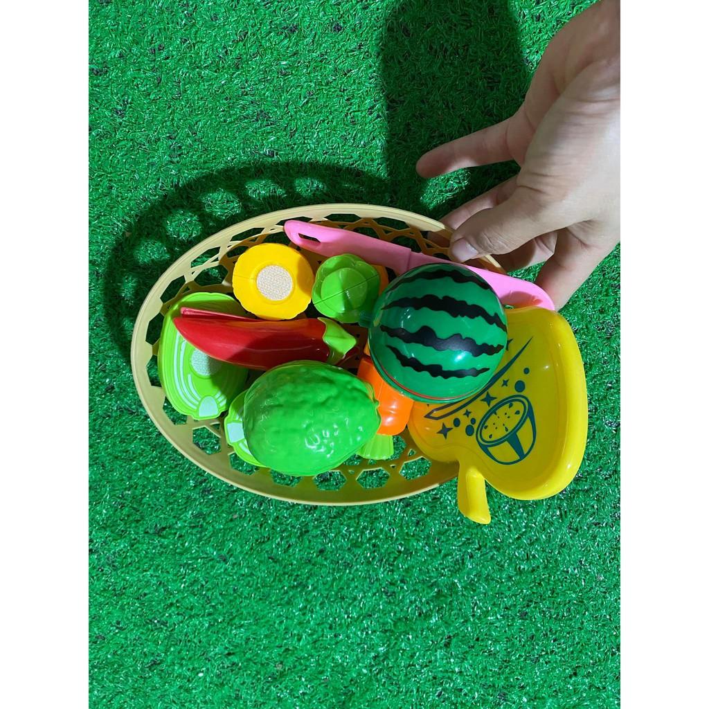Đồ chơi cắt hoa quả gồm: 1 rổ đựng, 1 dao, 1 thớt và 8 loại quả như hình Chất liệu: nhựa cao cấp. an toàn cho bé. Kích thước trung bình : 10x5 cm - tùy loai củ quả (chi tiết như hình ...