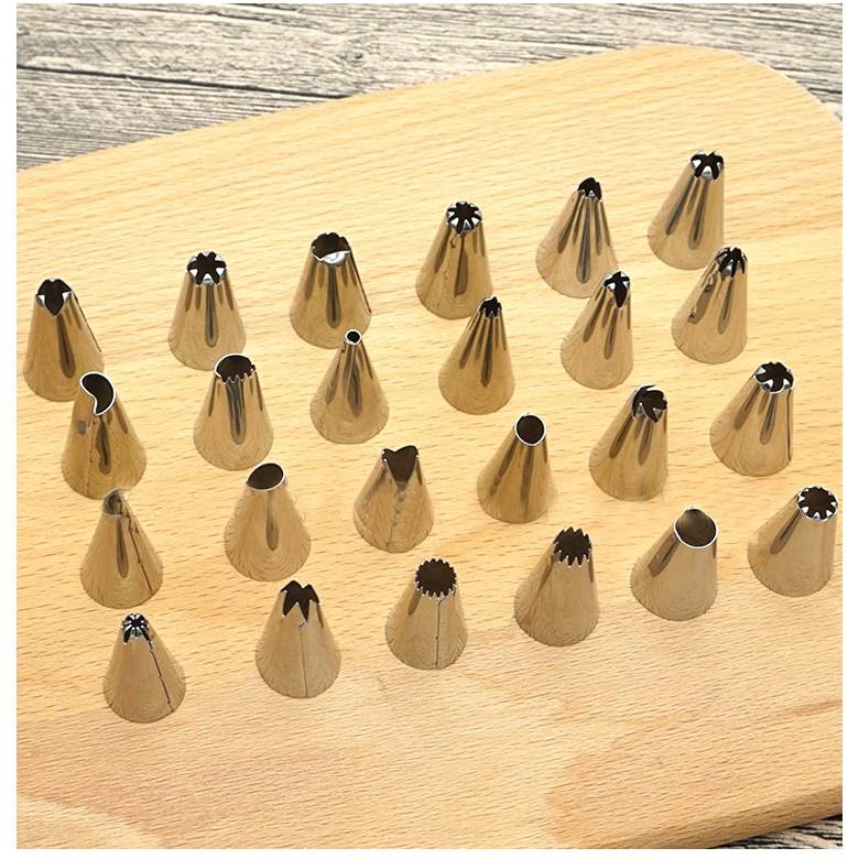 Bộ đui bắt kem 24 món là sản phẩm đặc biệt có thể đáp ứng hoàn toàn nhu cầu trang trí bánh kem của thợ bánh nói riêng và người mê làm bánh nói chung. Bộ đui có chất liệu từ thép không rỉ đả...