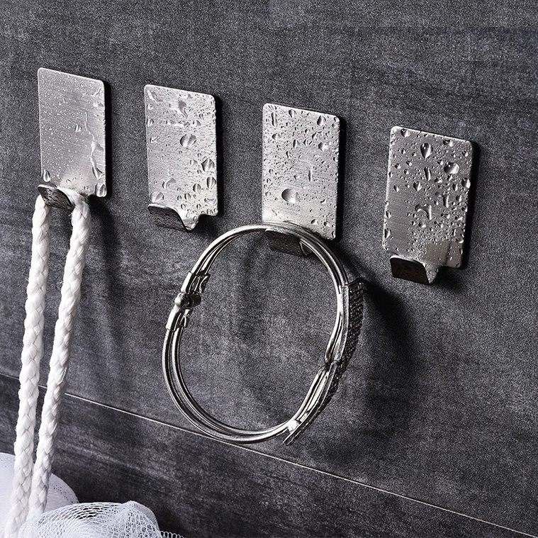 Bộ 10 Móc Treo Đồ Dán Tường Chữ Nhật Dẹt Inox 304 Nhỏ Gọn Bền Đẹp
